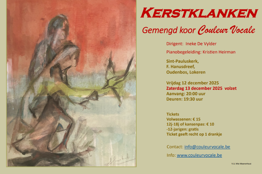 De zangers en de dirigent van Couleur Vocale nodigen je van harte uit voor: